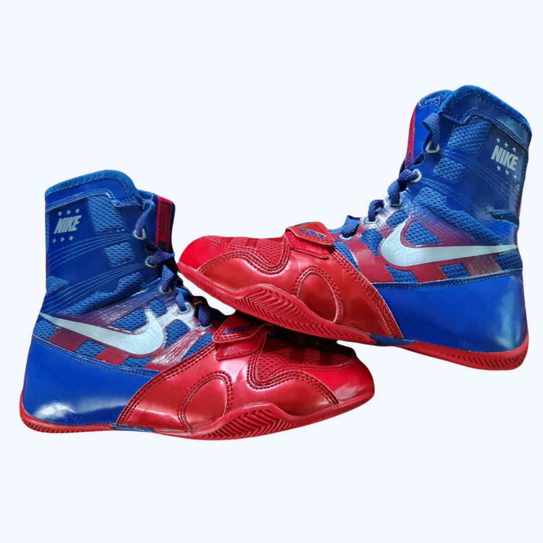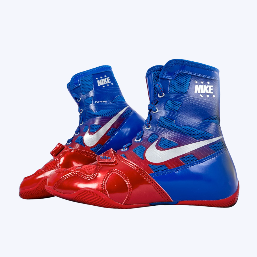 Step into the ring with confidence in these HyperKO Royal Blue & Red Boxing Shoes, (lookalikes) engineered for fighters who want maximum speed, stability, and style. These high-top boxing boots offer exceptional ankle support, ultra-lightweight construction, and a breathable mesh/ synthetic upper that keeps you cool during training and competition.