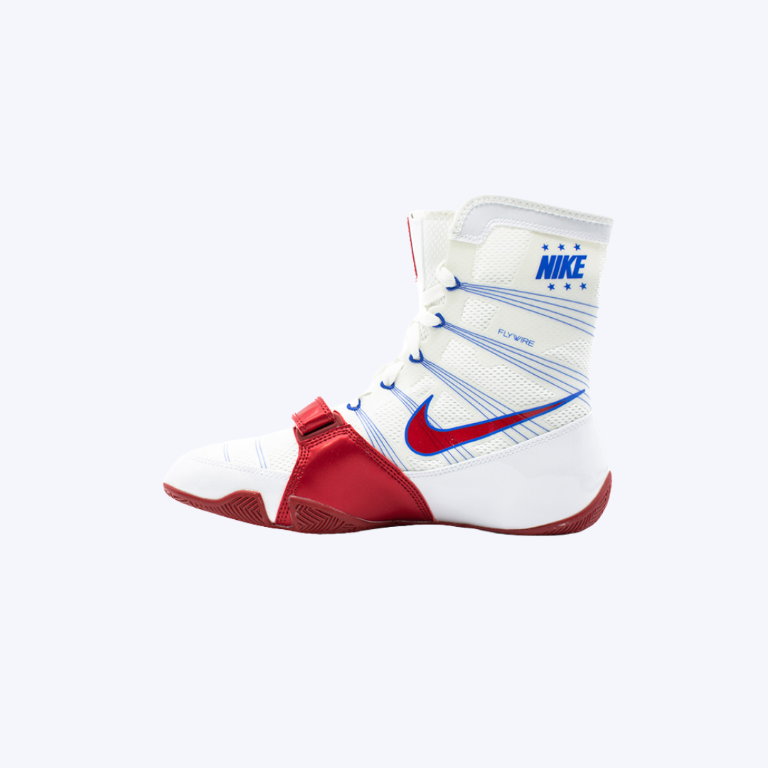 Step into the ring with confidence in these HyperKO White, Red & Blue Boxing Shoes, (Replica) engineered for fighters who want maximum speed, stability, and style. These high-top boxing boots offer exceptional ankle support, ultra-lightweight construction, and a breathable mesh/ synthetic upper that keeps you cool during training and competition.