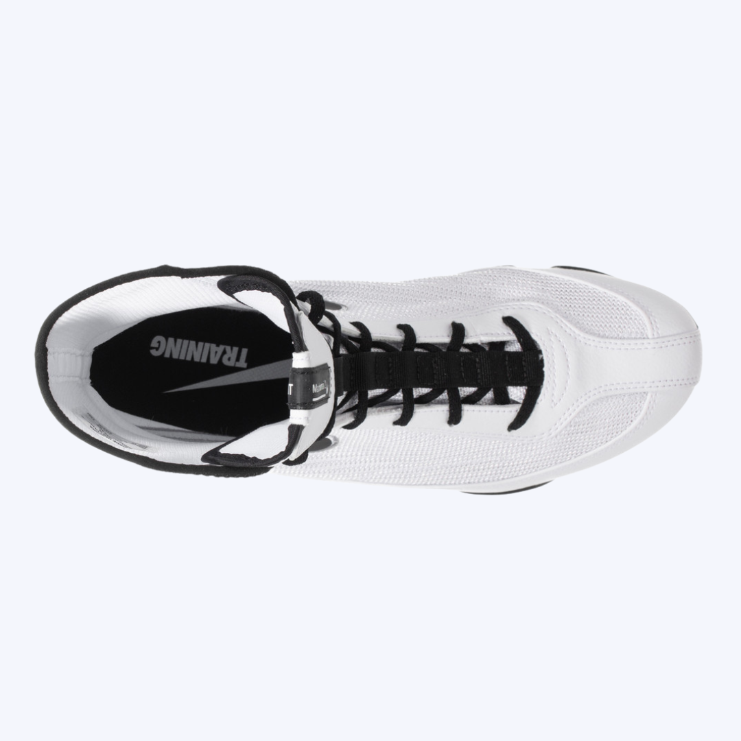Machomai Boxing Boots in White and Black deliver superior grip, ankle support, and lightweight comfort for fast, controlled movement in the ring. Designed for agility and breathability, these durable boxing footwear options enhance stability, speed, and confidence during training, sparring, and competition.
